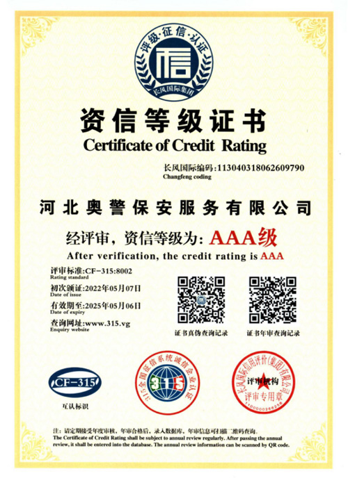 “忠誠的伙伴,非凡的朋友”,河北奧警保安服務(wù)有限公司本著“客戶的需求就是我們的追求”的服務(wù)理念,與廣大客戶攜手并進(jìn)、共創(chuàng)恢弘偉業(yè)。